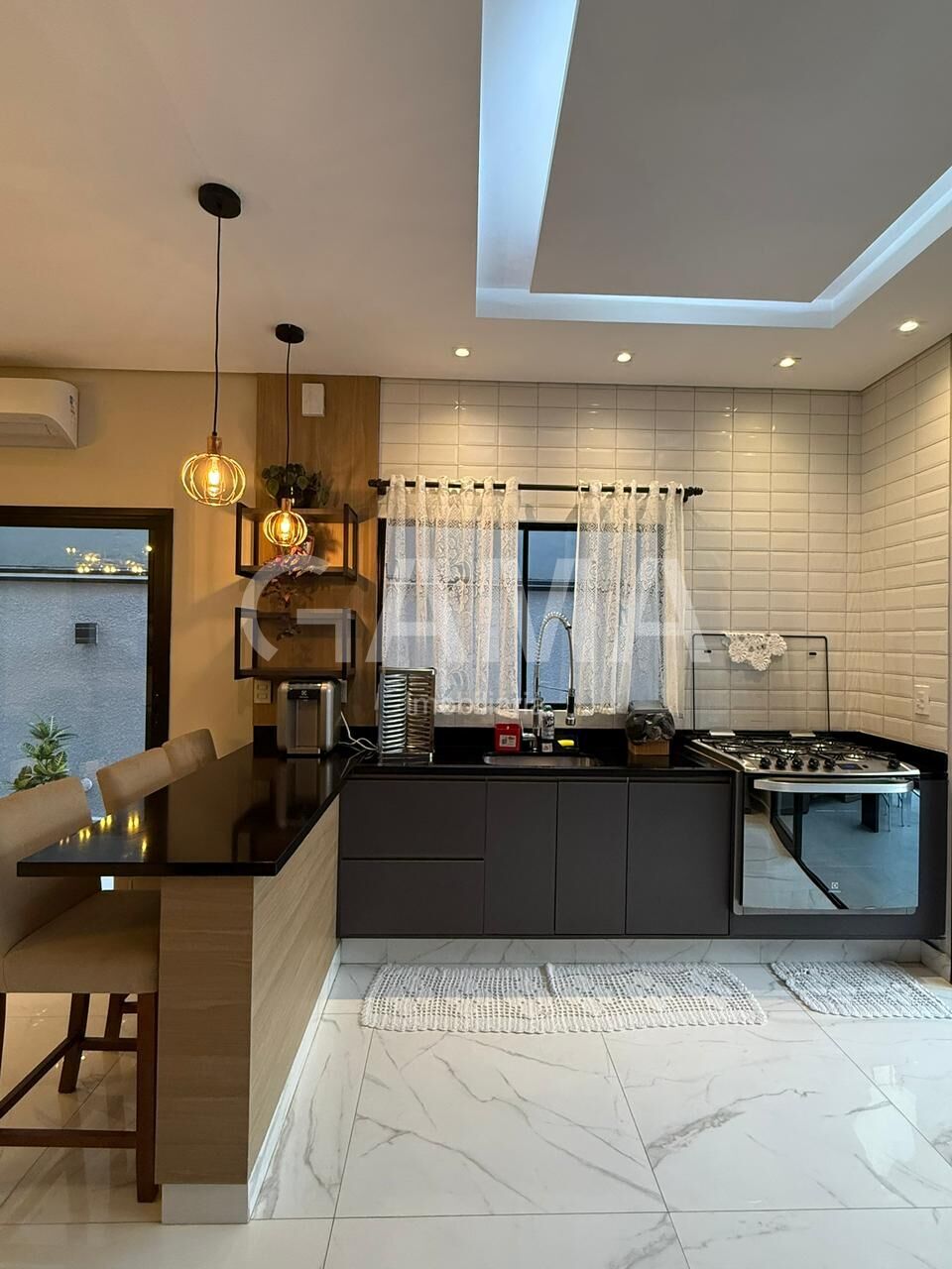 A casa conta com piscina, cozinha com móveis planejados, ar-condicionado em todos os ambientes e garagem para 2 carros.